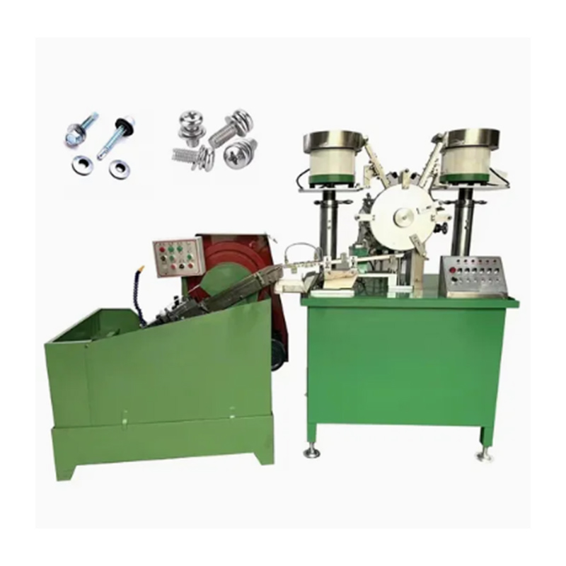 Машина для сборки шайб с самосверлящими винтами имеет полностью автоматические рабочие возможности и может выполнять основные процессы точной подачи винта, точной подачи шайбы и последовательного позиционирования шайбы под головкой винта без необходимости вмешательства человека на ключевых этапах сборки. Винты и шайбы подаются соответственно в два бункера, затем сортируются и выравниваются машиной, и, наконец, шайбы аккуратно надеваются на валы шнеков. Наконец, машина аккуратно их доставляет.